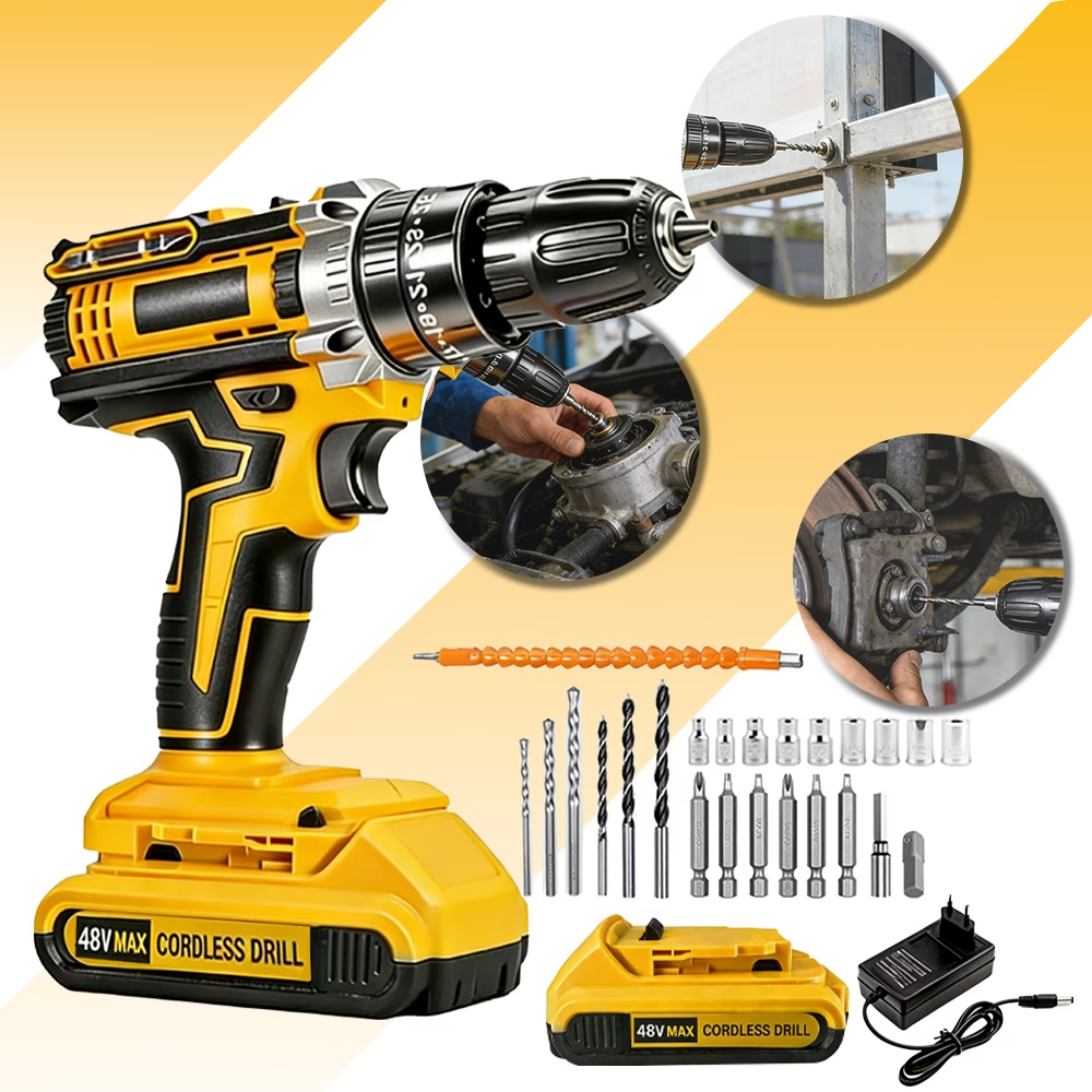 Conjunto completo incluindo furadeira principal e 2 baterias de 48V. Envio rápido de São Paulo – Receba seu pedido com rapidez e segurança!