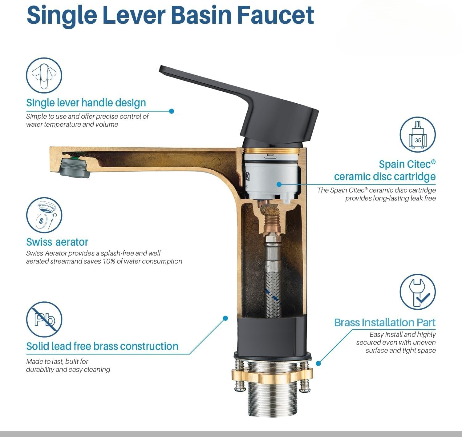 Instalação Universal - Compatível com 99% das pias brasileiras (furo padrão de 35 mm) Especificações Técnicas: Material: Corpo em liga de alumínio de grau aeroespacial + revestimento de polímero preto Conexões: Entrada/saída de 1/2" (DN15) com rosca externa de 20 mm Dimensões: Altura 12 cm × Projeção 8 cm (medidas exatas nas imagens) Peso: 500 g (embalagem protetora resistente a impactos) Benefícios Exclusivos: Anticalcário: Superfície tratada contra Sem manchas brancas. Sem gotejamento: Válvula de cerâmica premium (testada para 500.000 ciclos). Economia de água: Vazão otimizada de 5,5 L/min. Compatibilidade garantida.
