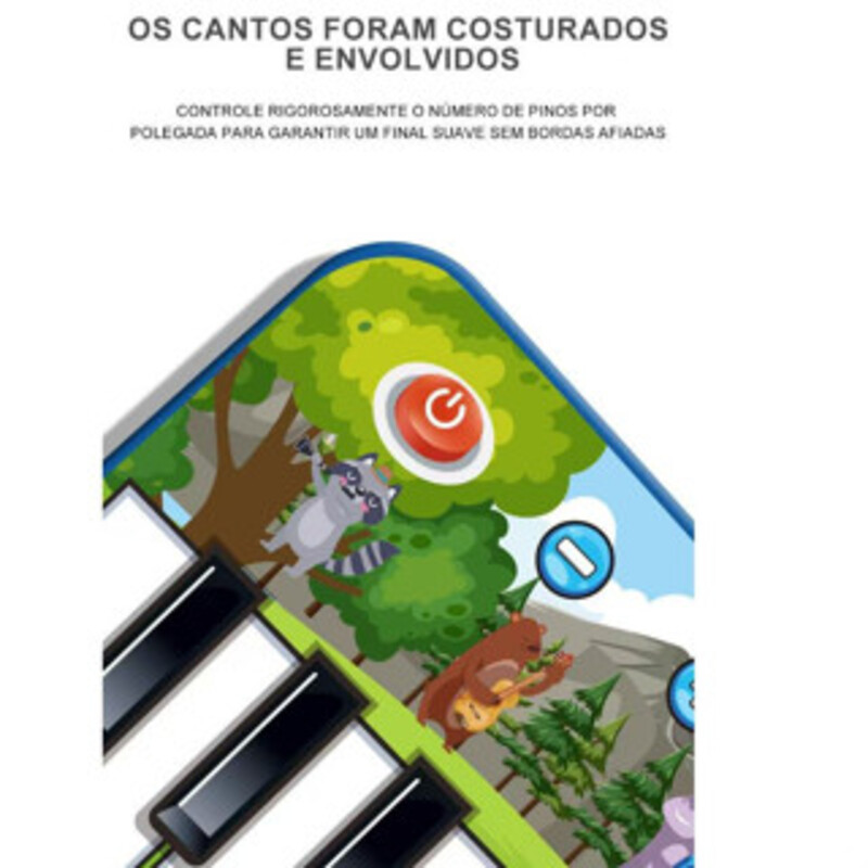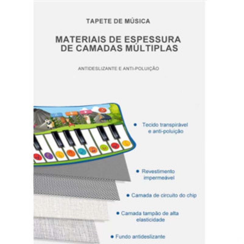 Demonstração: Nesta função, cada tecla toca uma música; - Uma Tecla/Uma Nota: Ativa a função de uma única tecla; - Reproduzir: Ativa a função de pressionar uma tecla; - Gravar: Grava as teclas pressionadas; - Reproduzir: Repete as teclas gravadas. Características: - Material: Tecido e plástico ABS.