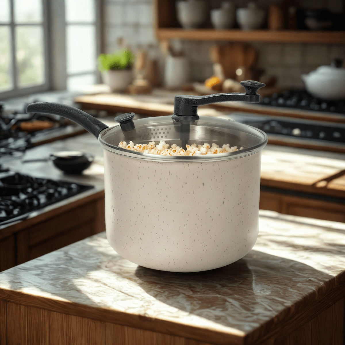5 Camadas Antiaderentes: Sem pipoca grudando no fundo! O revestimento de Teflon de alta qualidade garante que a pipoca estoure facilmente e facilita a limpeza.