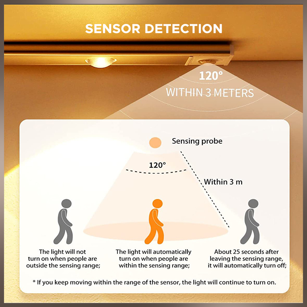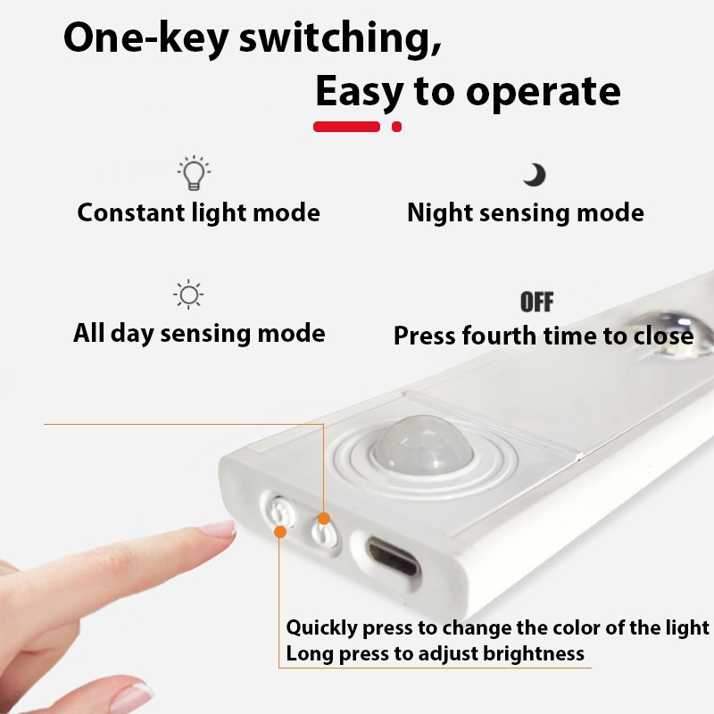 Lâmpada LED com sensor - Sensor integrado, design magnético autoadesivo sem fio, carregamento USB, três cores com brilho ajustável, bateria de lítio de alta capacidade integrada - Alto brilho, longa duração da bateria, ideal para cozinhas, quartos, guarda-roupas, vitrines, etc.![]()
