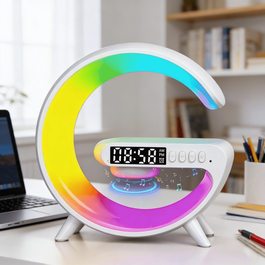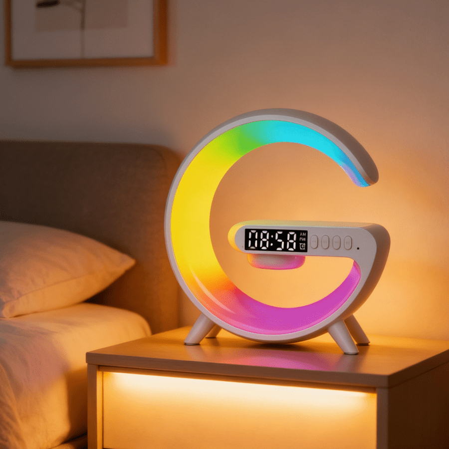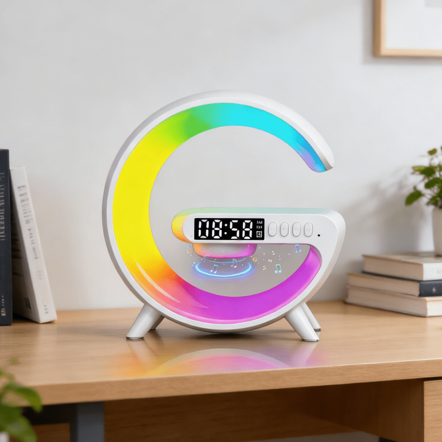 G-Speaker, um dispositivo multifuncional que serve como luminária RGB, caixa de som Bluetooth e carregador por indução.